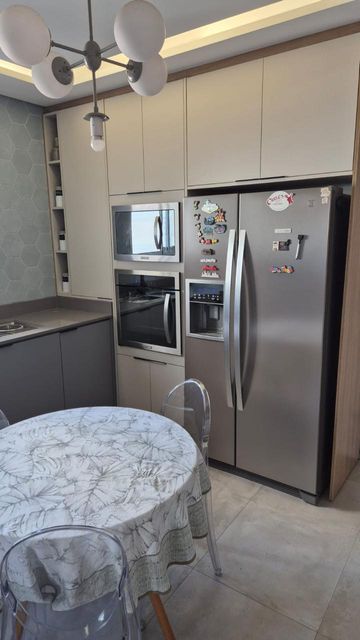 Lindo apto em edifício de torre única, com 12 andares, 2 aptos por andar, com 110 m2 bem distribuídos, 3 quartos (1 suíte), 2 wc, varanda, , moveis planejados e todo reformado com arquiteto. Móveis planejados na cozinha, quartos e banheiros, sala (somente rack e painel da TV). Ar condicionado na sala e em todos os quartos e na sala. Lavanderia com armário, closet e banheiro de empregada, piso porcelanato na cozinha e piso vinílico nos demais ambientes. Portaria virtual 24hs, elevador serviço e social, 2 vagas cobertas e fixas, salão de festas, churrasqueira, salão de jogos, pequena academia.