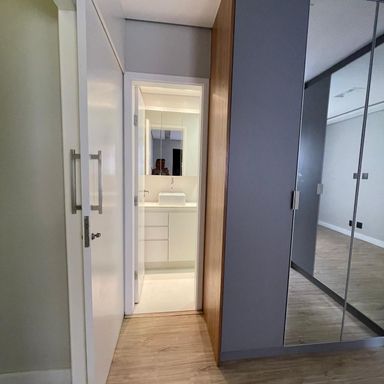 Lindo apartamento térreo com sacada de 82m2 reformado, dois quartos sendo uma suíte e um banheiro, cozinha americana planejada, com cooktop e forno embutido, mesa de jantar com 4 cadeiras, sala ampla, com armários planejados nos quartos e banheiro, todo em piso laminado, área de serviço separada e com armários, 2 vagas fixas e cobertas na garagem. Prédio 3 andares com elevador, baixo custo de condomínio e bairro silencioso e perto de principais avenidas, parque, escolas, bancos, hospitais e shopping. Agende sua visita!