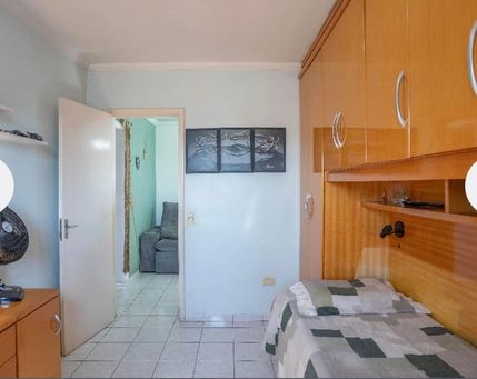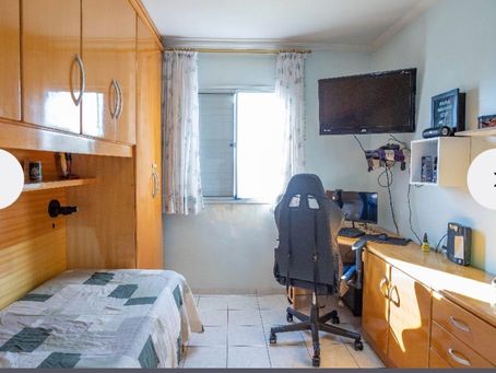 Apto no Taboão de 47m2, com 2 dormitórios, sacada , 1 vaga de garagem fixa, com guarda roupa casal e solteiro, armários da cozinha, lustres, ventilador de teto, rack, secadora de roupa, mesa de jantar de mármore.