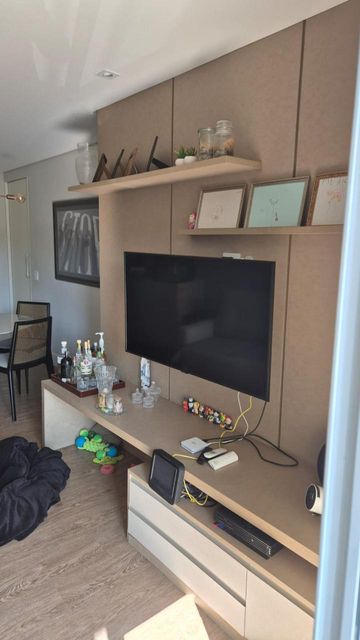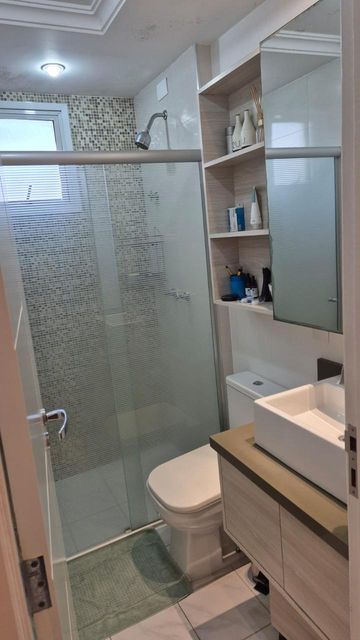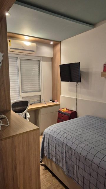 Lindo apto em edifício de torre única, com 12 andares, 2 aptos por andar, com 110 m2 bem distribuídos, 3 quartos (1 suíte), 2 wc, varanda, , moveis planejados e todo reformado com arquiteto. Móveis planejados na cozinha, quartos e banheiros, sala (somente rack e painel da TV). Ar condicionado na sala e em todos os quartos e na sala. Lavanderia com armário, closet e banheiro de empregada, piso porcelanato na cozinha e piso vinílico nos demais ambientes. Portaria virtual 24hs, elevador serviço e social, 2 vagas cobertas e fixas, salão de festas, churrasqueira, salão de jogos, pequena academia.