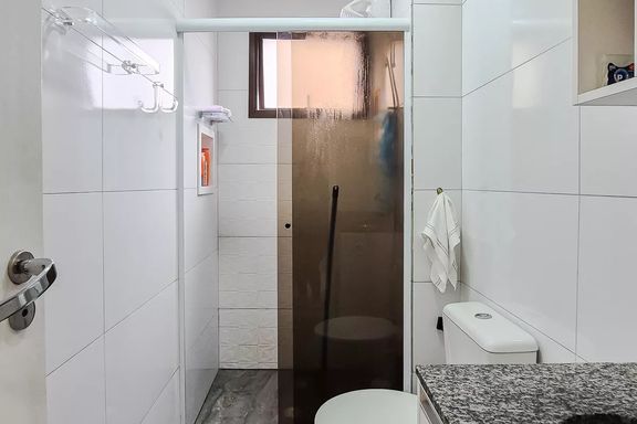 Apartamento reformado de 68m2, com todos os cômodos retos, sala em L bem iluminada naturalmente, 3 quartos, 1 banheiro, 1 vaga rotativa, elevador social e de serviço, portaria 24hs, super bem localizado, próximo ao parque Chácara Silvestre no bairro Nova Petrópolis em São Bernardo do Campo.