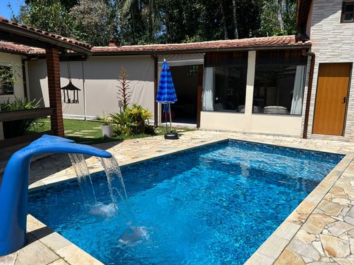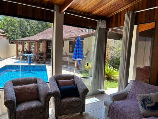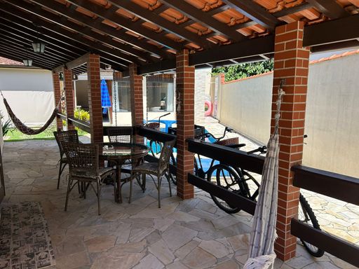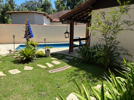 Belíssima casa de praia com piscina, sauna, churrasqueira, lareira, com 5 quartos, 2 banheiros, duchas externas, cozinha americana, depósito e 4 vagas de carro. Agende sua visita!